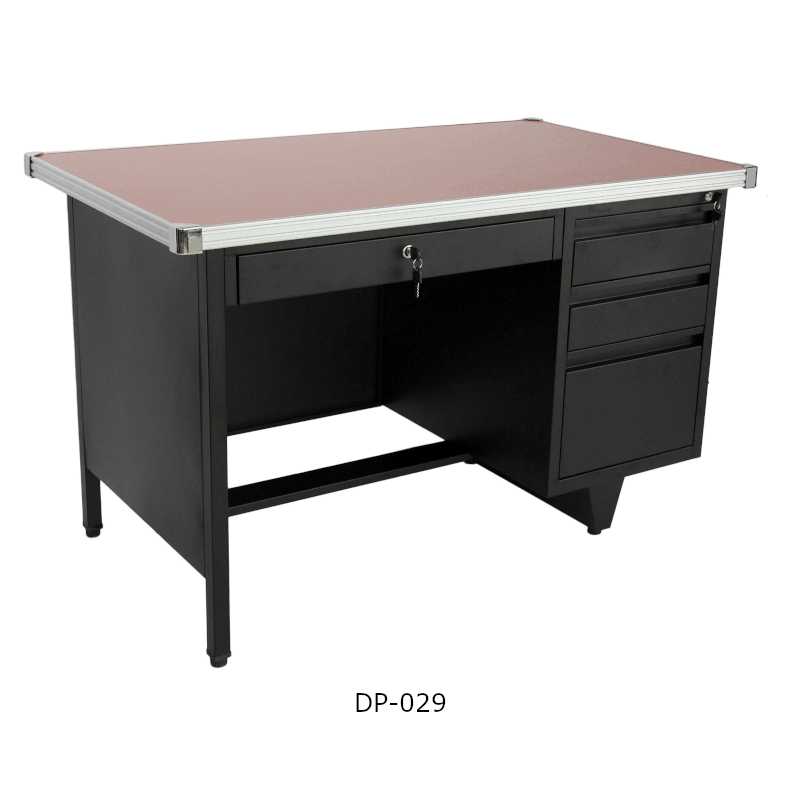 This desk is thoughtfully designed to maximize desktop space while keeping items neatly organized. It comes equipped with four drawers, catering to the diverse daily storage needs of employees. Two safety locks ensure the security and privacy of stored items. The desk features an eco-friendly epoxy powder coating that enhances water and rust resistance, ensuring durability. Additionally, the one-piece desktop with aluminum alloy edging extends its service life, making it a practical and long-lasting addition to any workspace.